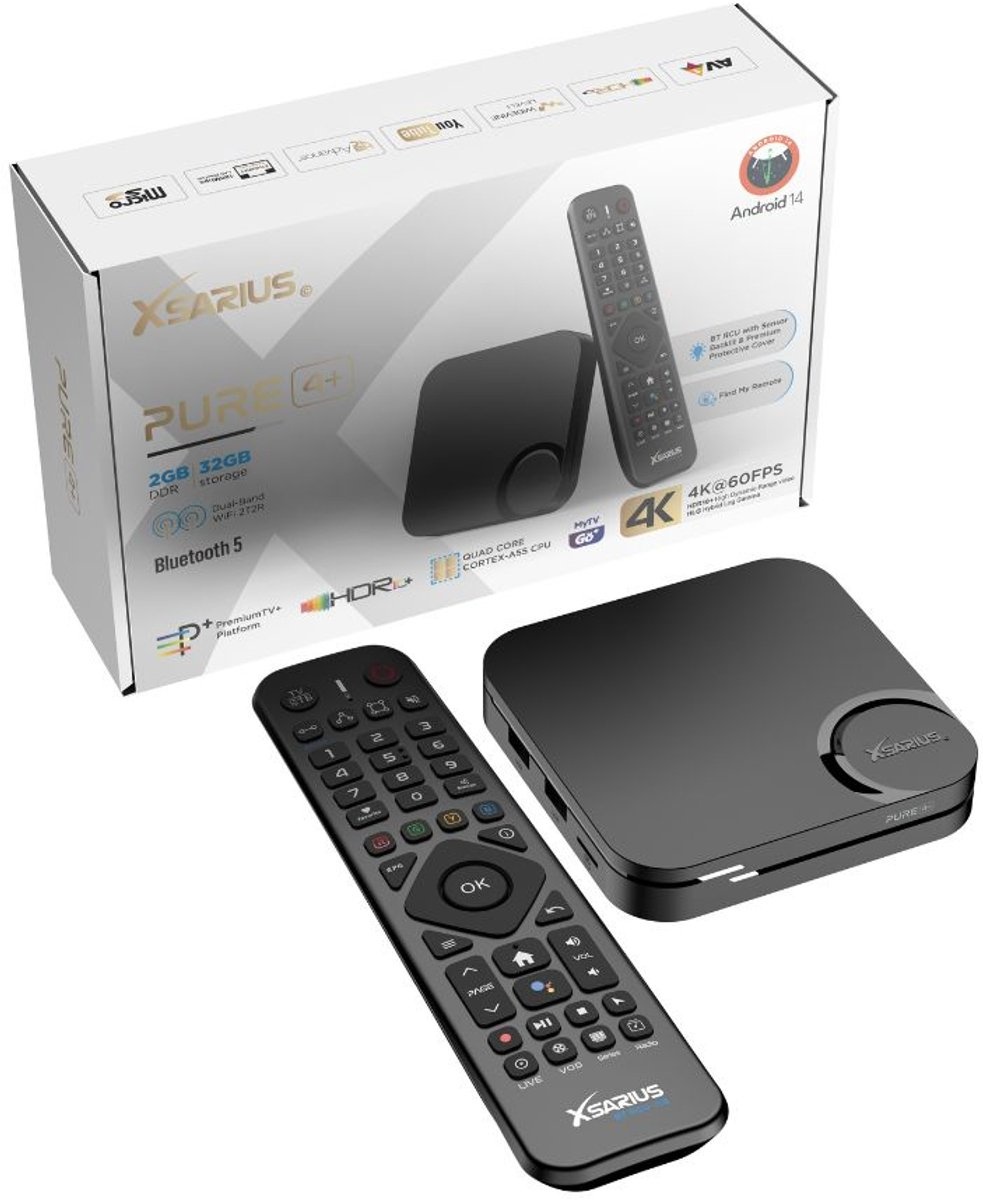 Ervaar de ultieme wow-factor met de Xsarius Pure 4+, de nieuwste 4K UHD-streamingbox die entertainment opnieuw definieert. Geniet van levensechte beelden in HDR10+, razendsnelle prestaties dankzij Android 14 en een Quad-Core processor, en profiteer van Bluetooth 5 voor snelle en stabiele verbindingen met al je randapparatuur. Met 32 GB opslag en 2 GB RAM heb je meer dan genoeg ruimte voor al je apps en media.